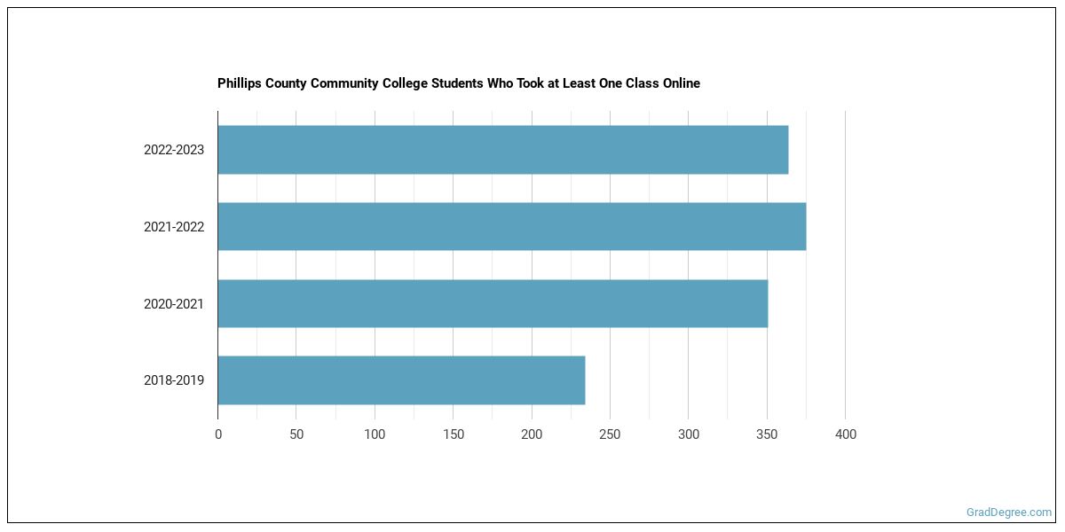 The following chart shows how the online learning population at Phillips County Community College has changed over the last few years.