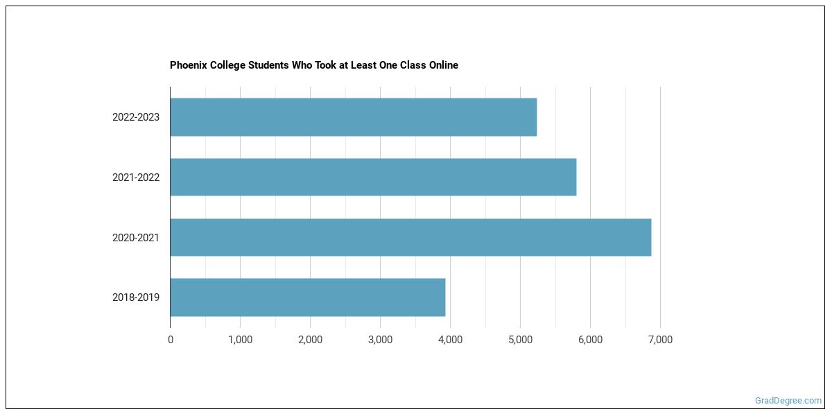 The following chart shows how the online learning population at Phoenix College has changed over the last few years.