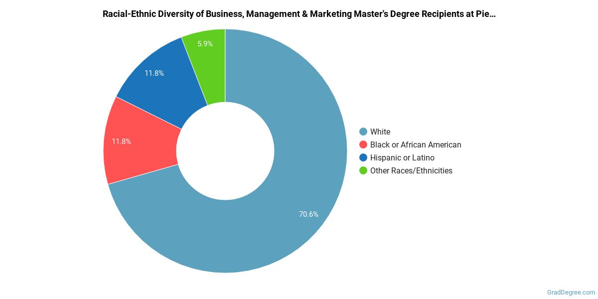 The following table and chart show the race/ethnicity for students who recently graduated from Piedmont College with a master's in business, management and marketing.