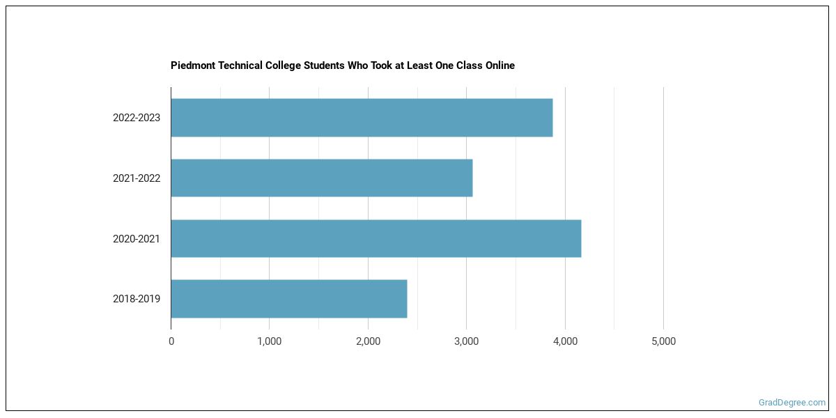 The following chart shows how the online learning population at Piedmont Technical College has changed over the last few years.