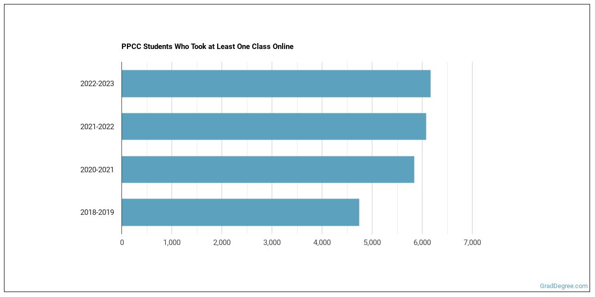 The following chart shows how the online learning population at PPCC has changed over the last few years.