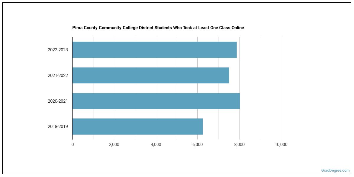 The following chart shows how the online learning population at Pima County Community College District has changed over the last few years.