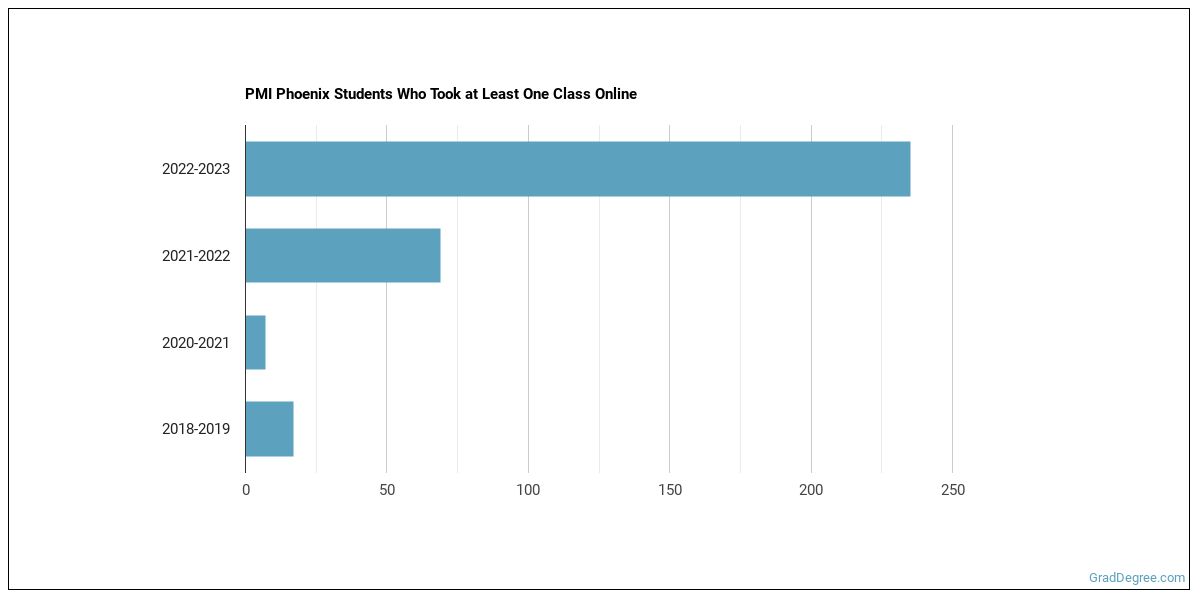 The following chart shows how the online learning population at PMI Phoenix has changed over the last few years.