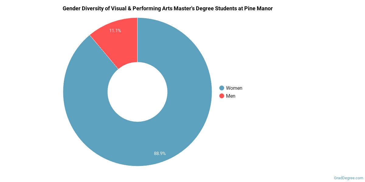 If you plan to study visual and performing arts, take a look at what Pine Manor College has to offer and decide if the program is a good match for you. Get started with the following essential facts.Pine Manor is located in Chestnut Hill, Massachusetts and has a total student population of 199. During the 2020-2021 academic year, 9 students received their master's degree in visual and performing arts.