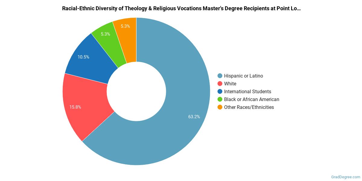 The following table and chart show the race/ethnicity for students who recently graduated from Point Loma Nazarene University with a master's in theology and religious vocations.