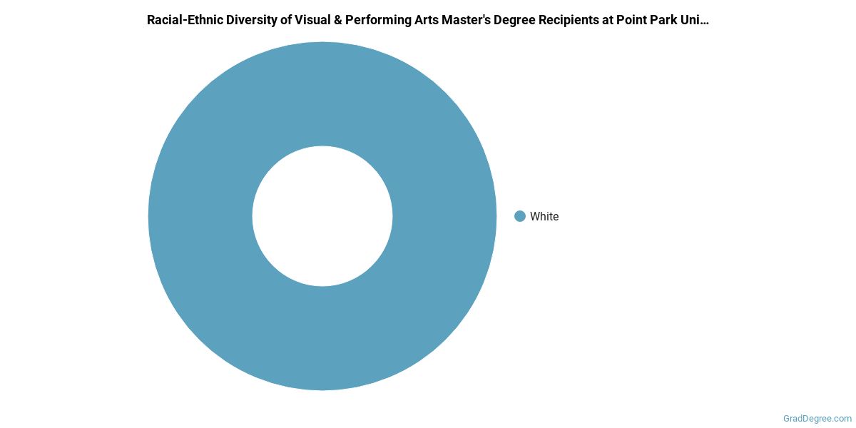 Of the students who received a visual and performing arts master's degree from Point Park, 100% were white. This is above average for this degree on the natiowide level.