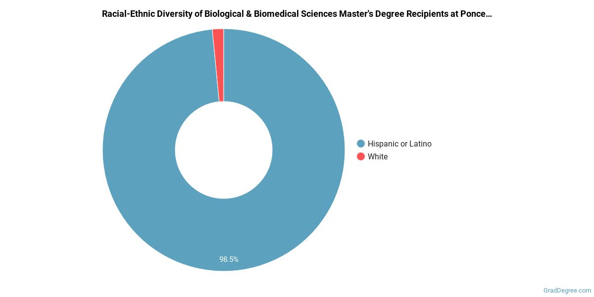 The following table and chart show the race/ethnicity for students who recently graduated from Ponce Health Sciences University with a master's in biological and biomedical sciences.