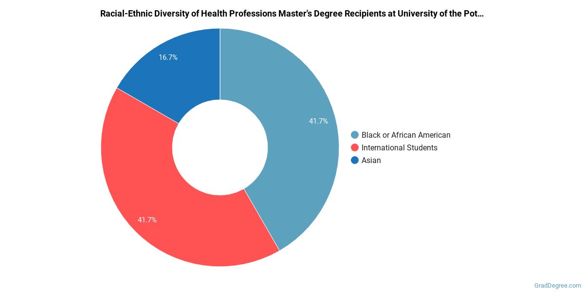 The following table and chart show the race/ethnicity for students who recently graduated from University of the Potomac - VA Campus with a master's in health professions.