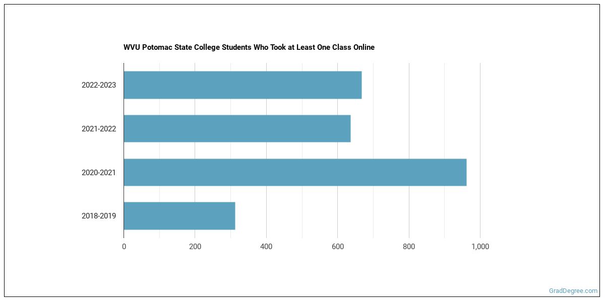 The following chart shows how the online learning population at WVU Potomac State College has changed over the last few years.