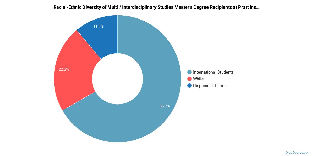 The following table and chart show the race/ethnicity for students who recently graduated from Pratt Institute - Main with a master's in multi / interdisciplinary studies.