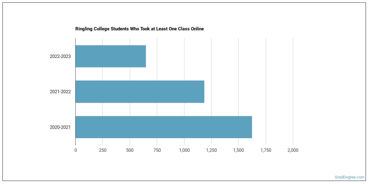 The following chart shows how the online learning population at Ringling College has changed over the last few years.