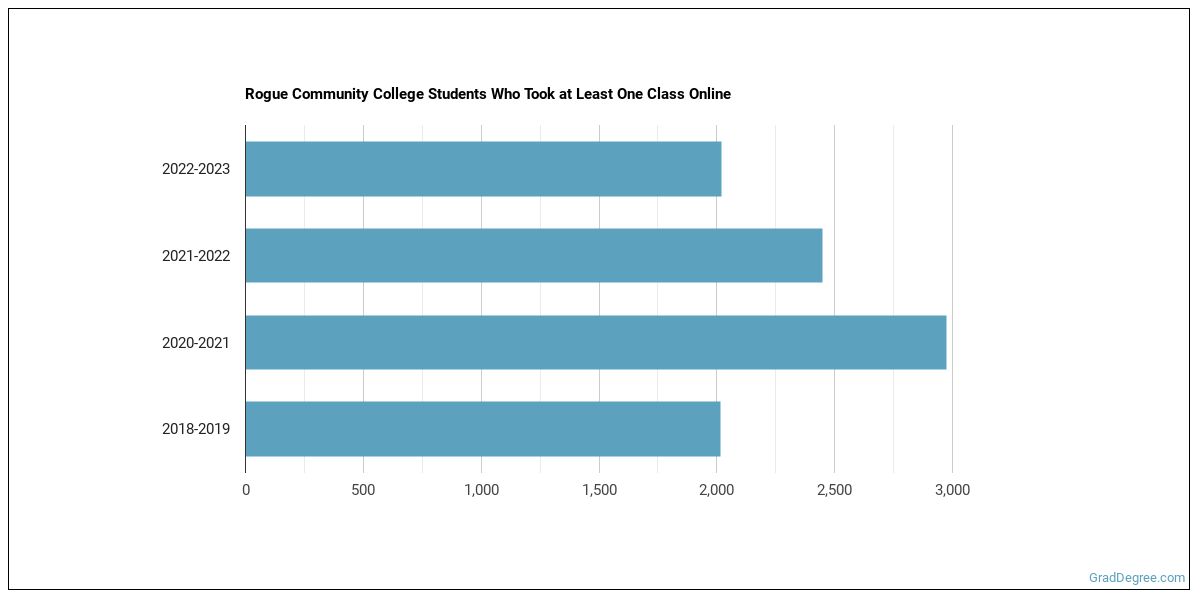 The following chart shows how the online learning population at Rogue Community College has changed over the last few years.