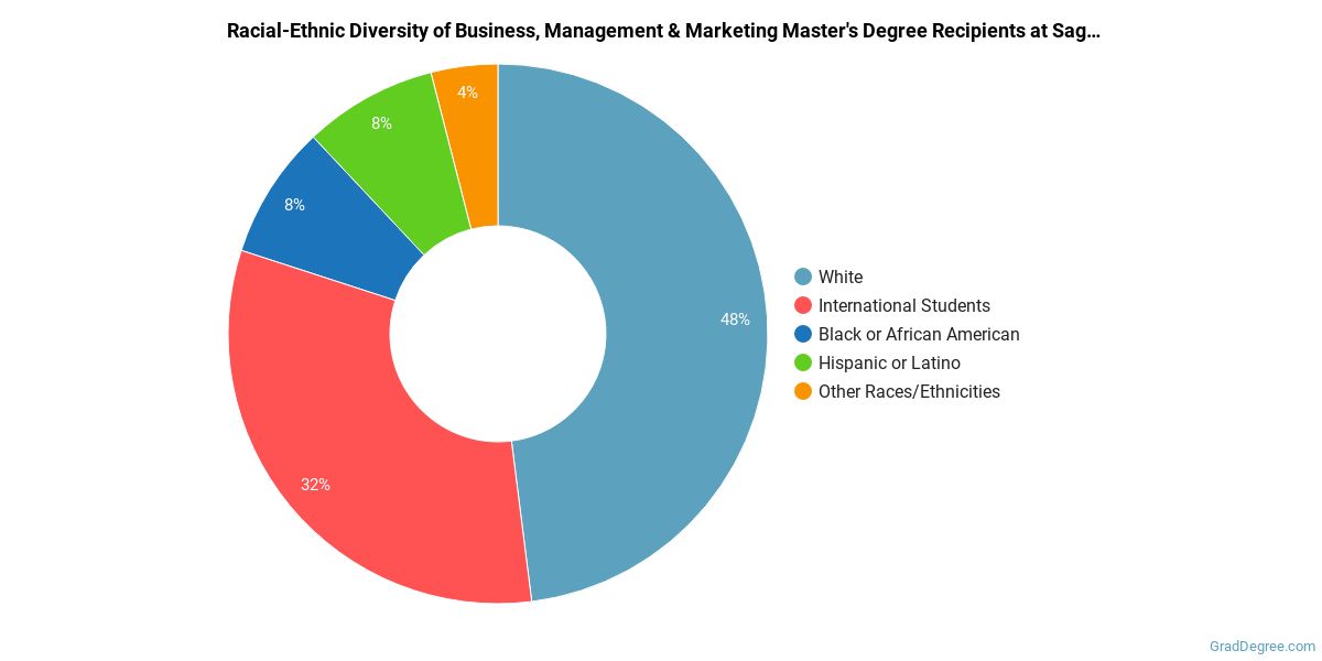 The following table and chart show the race/ethnicity for students who recently graduated from Saginaw Valley State University with a master's in business, management and marketing.