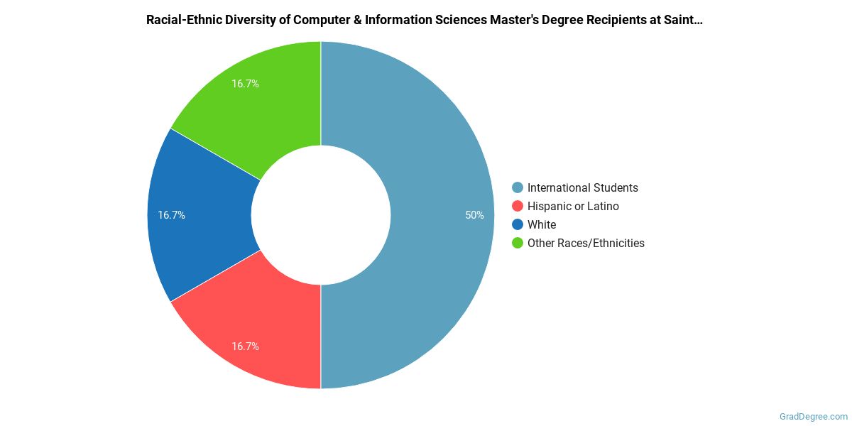 The following table and chart show the race/ethnicity for students who recently graduated from Saint Peter's University with a master's in computer and information sciences.