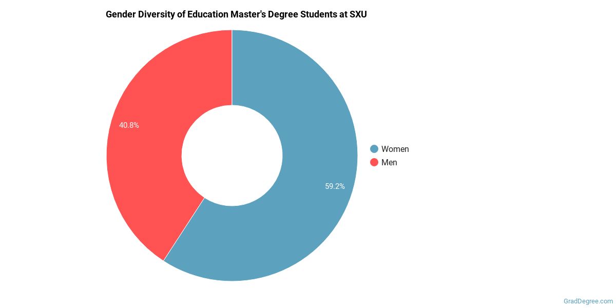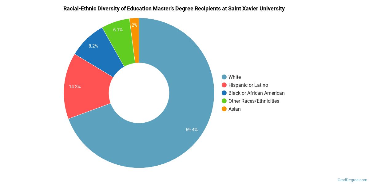 Of the students who received a education master's degree from SXU, 69% were white. This is above average for this degree on the natiowide level.