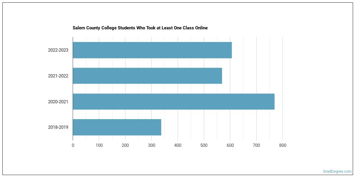 The following chart shows how the online learning population at Salem County College has changed over the last few years.