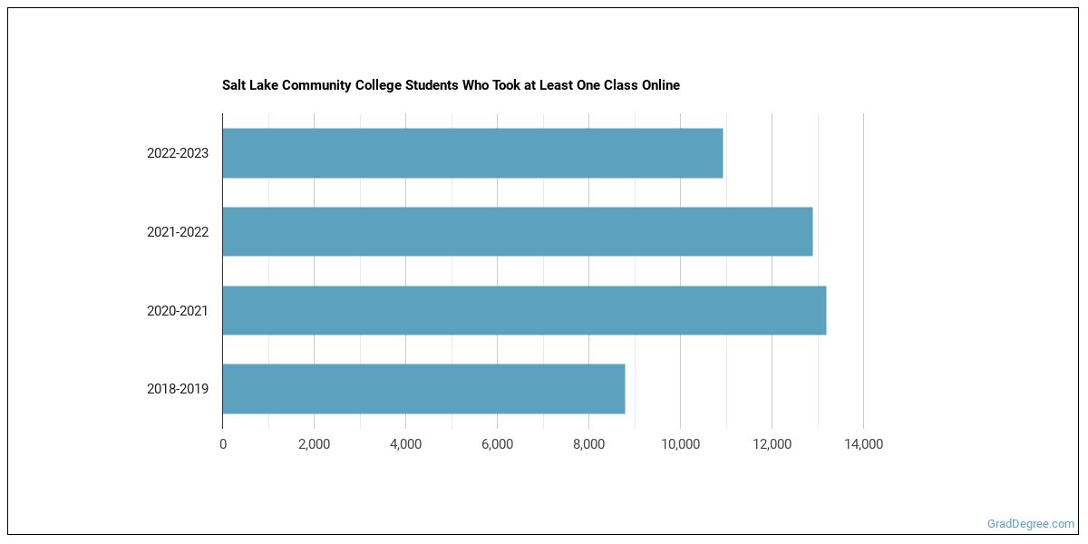 The following chart shows how the online learning population at Salt Lake Community College has changed over the last few years.