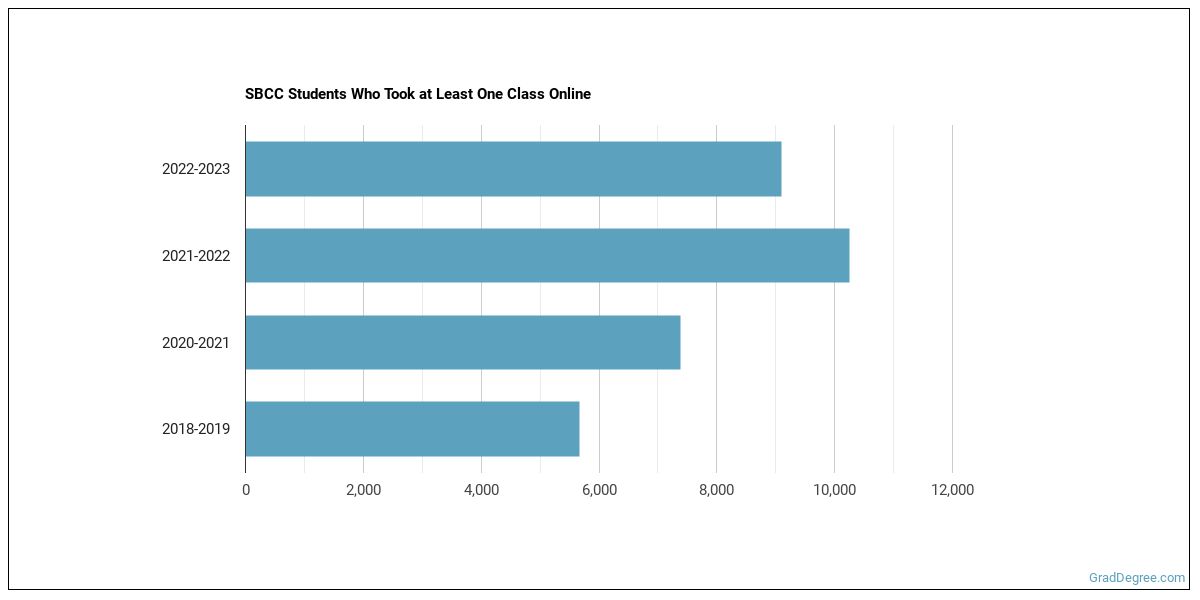 The following chart shows how the online learning population at SBCC has changed over the last few years.