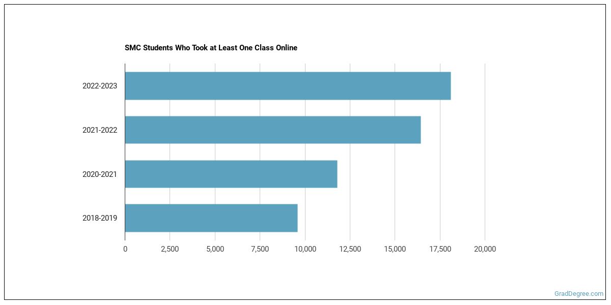 The following chart shows how the online learning population at SMC has changed over the last few years.