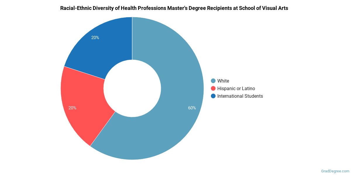 Of the students who received a health professions master's degree from SVA, 60% were white. This is above average for this degree on the natiowide level.
