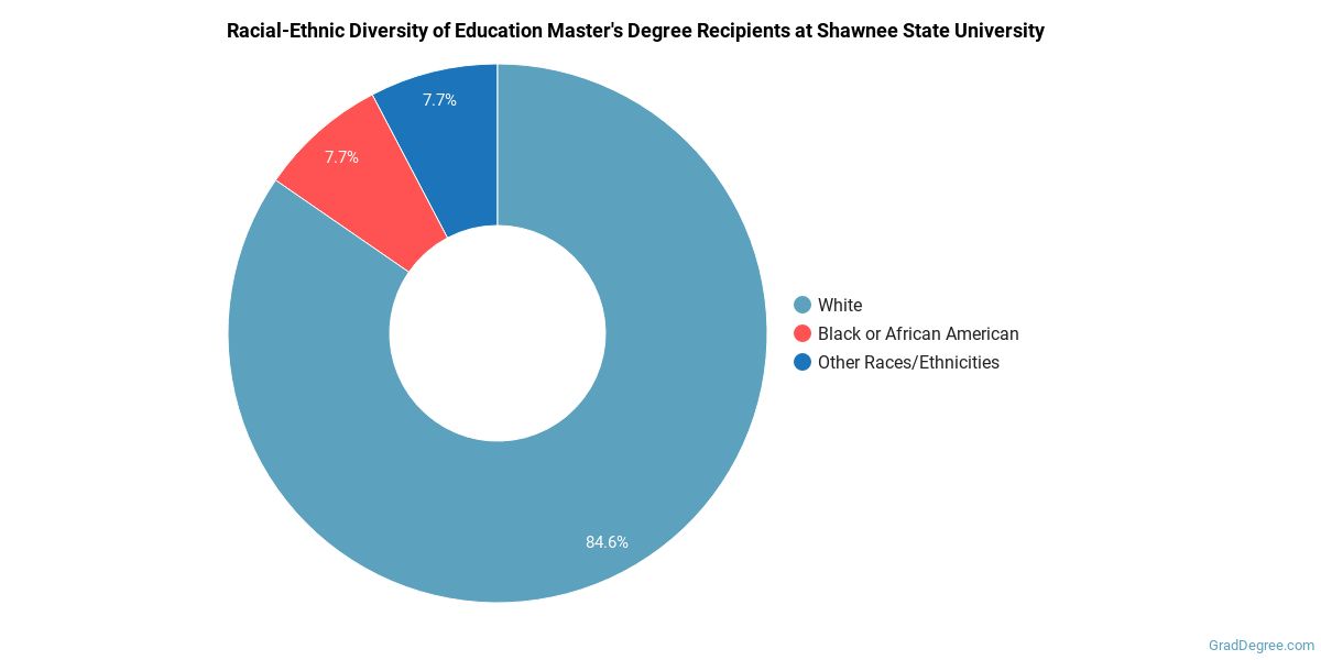 Of the students who received a education master's degree from Shawnee State University, 85% were white. This is above average for this degree on the natiowide level.