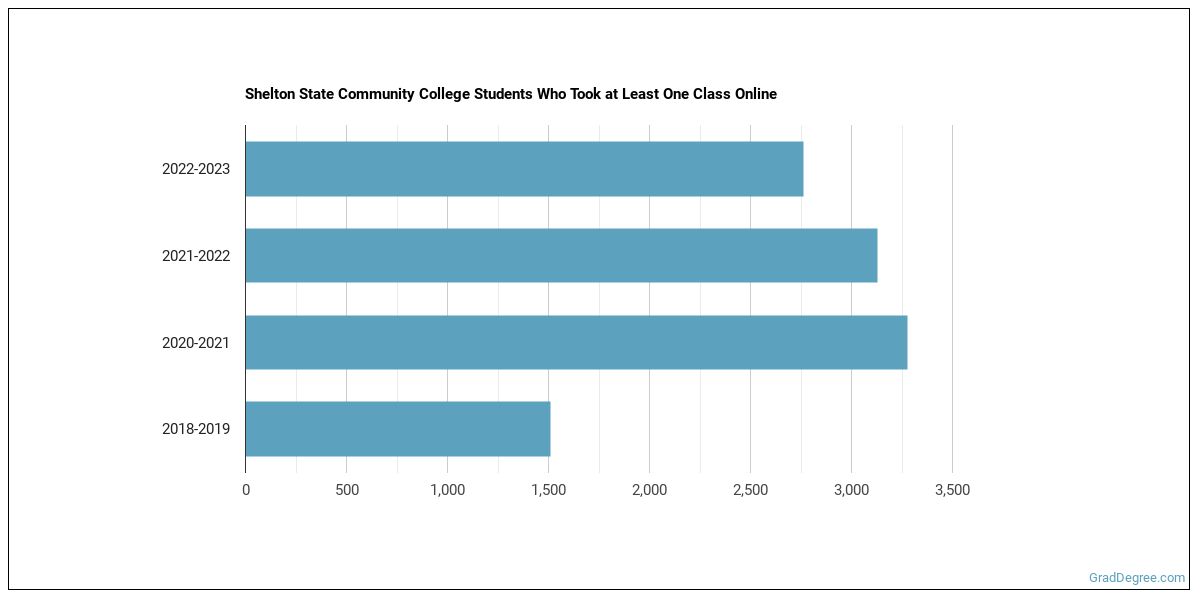 The following table shows the 1-year growth rate of Shelton State Community College majors that offer at least one online course. This table only includes majors with positive growth.