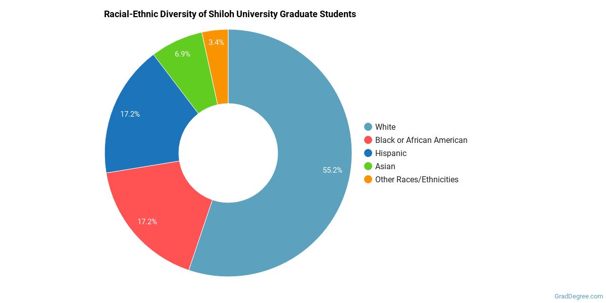 The racial-ethnic breakdown of Shiloh University graduate students is as follows.