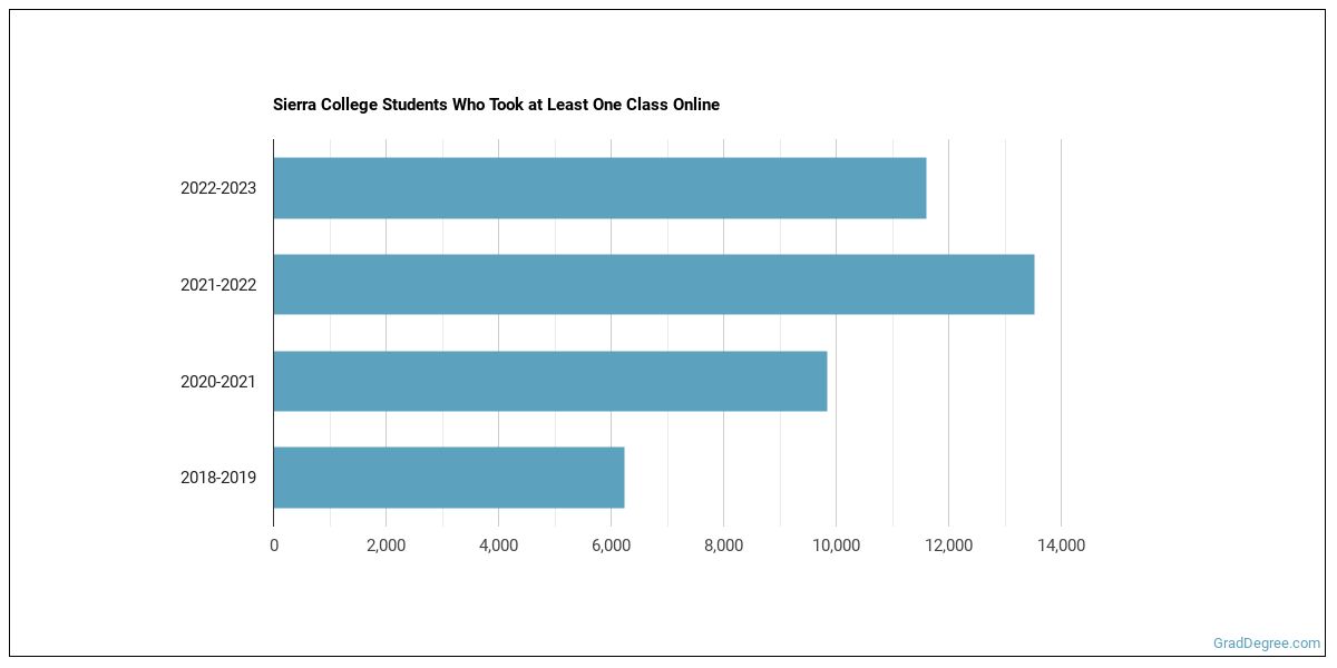 The following chart shows how the online learning population at Sierra College has changed over the last few years.