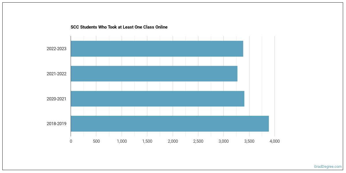 The following chart shows how the online learning population at SCC has changed over the last few years.