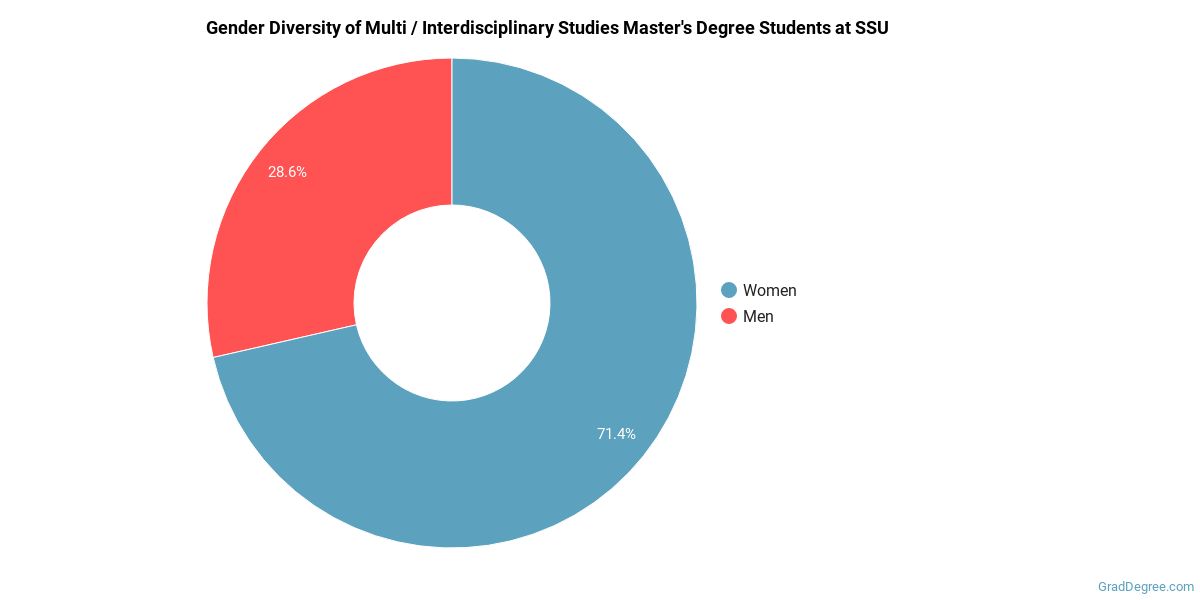 Of the students who received a multi / interdisciplinary studies master's degree from SSU, 71% were white. This is above average for this degree on the natiowide level.