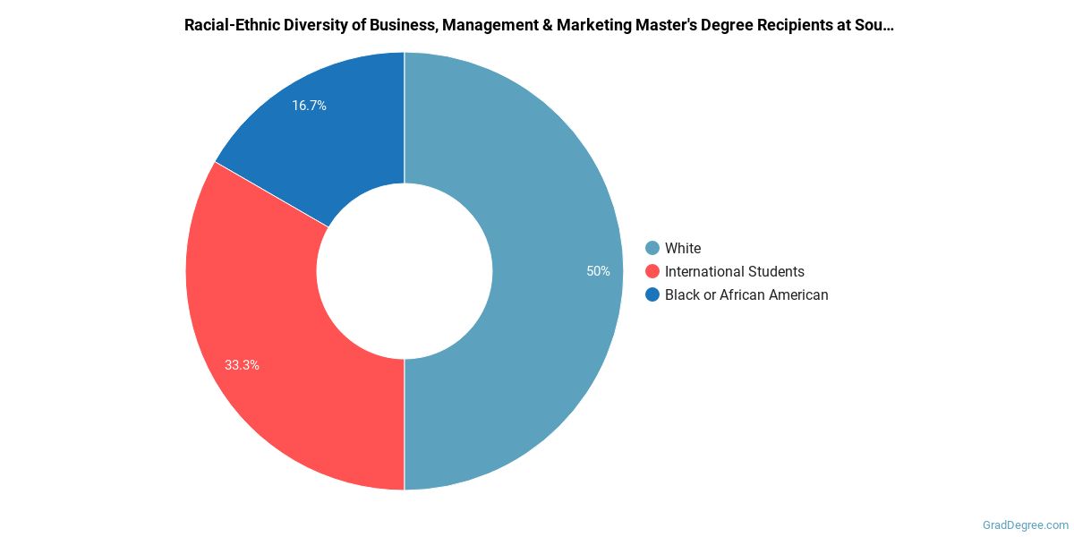 The following table and chart show the race/ethnicity for students who recently graduated from South University, Austin with a master's in business, management and marketing.