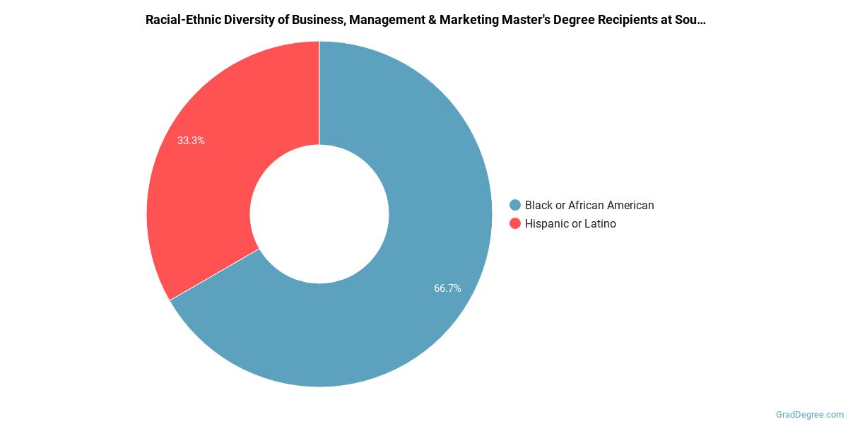 In the business, management and marketing master's program at this school, racial-ethnic minorities make up 100% of degree recipients. That is 68% better than the national average.*