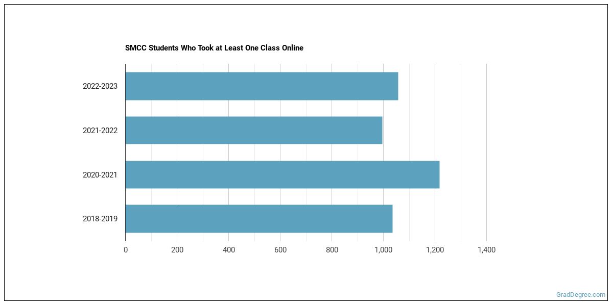 The following chart shows how the online learning population at SMCC has changed over the last few years.