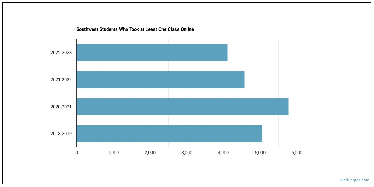 The following chart shows how the online learning population at Southwest has changed over the last few years.