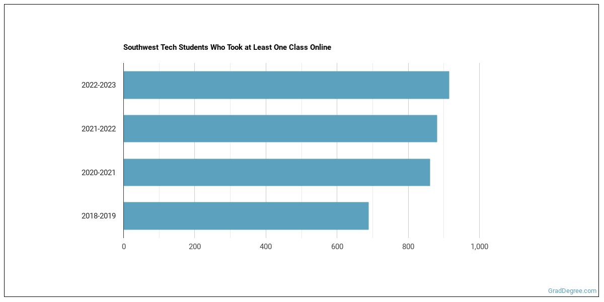 The following chart shows how the online learning population at Southwest Tech has changed over the last few years.