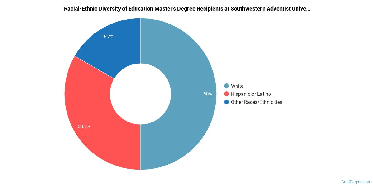 The following table and chart show the race/ethnicity for students who recently graduated from Southwestern Adventist University with a master's in education.