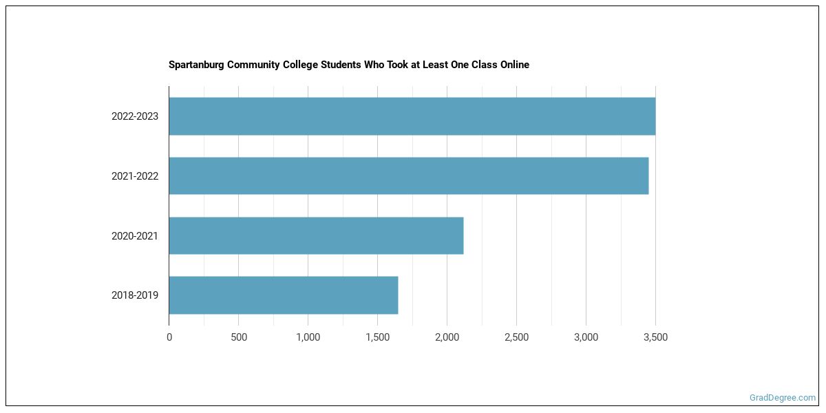 The following chart shows how the online learning population at Spartanburg Community College has changed over the last few years.