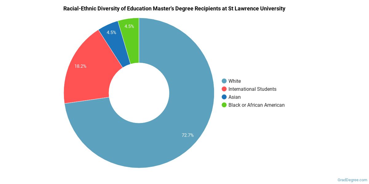 Of the students who received a education master's degree from St. Lawrence, 73% were white. This is above average for this degree on the natiowide level.