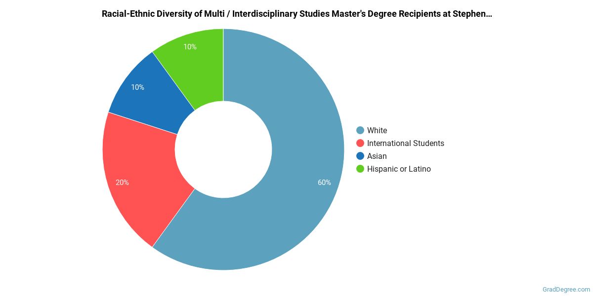 Of the students who received a multi / interdisciplinary studies master's degree from SFASU, 60% were white. This is above average for this degree on the natiowide level.