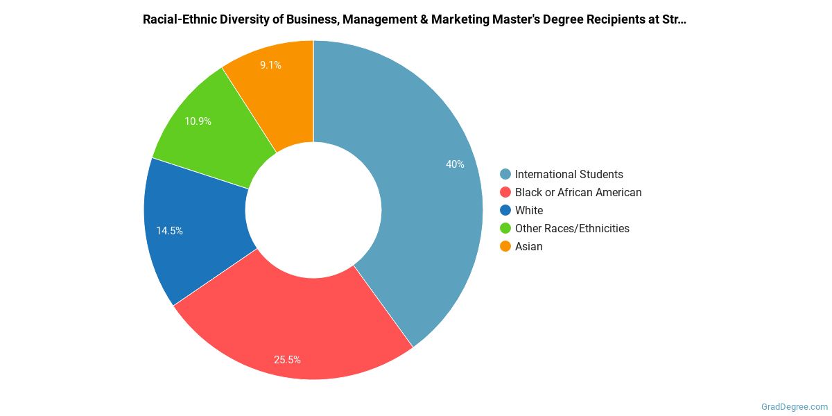 The following table and chart show the race/ethnicity for students who recently graduated from Stratford University with a master's in business, management and marketing.