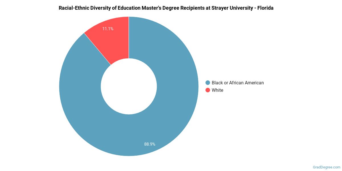 The following table and chart show the race/ethnicity for students who recently graduated from Strayer University - Florida with a master's in education.
