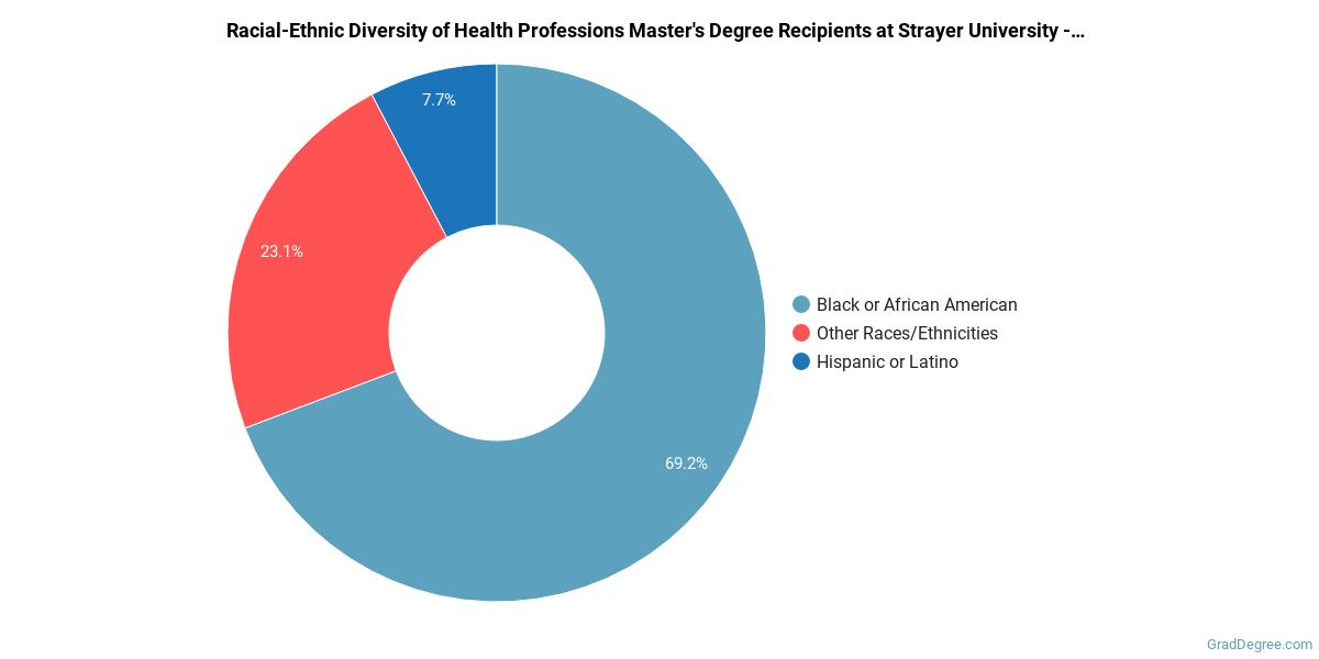 The following table and chart show the race/ethnicity for students who recently graduated from Strayer University - South Carolina with a master's in health professions.