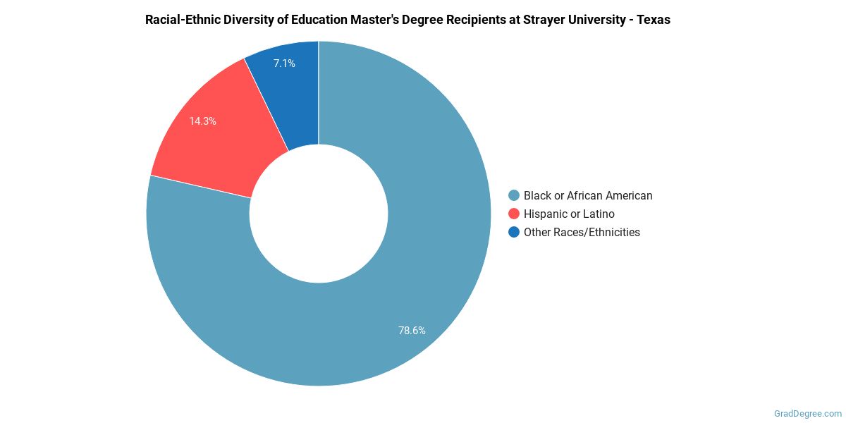 The following table and chart show the race/ethnicity for students who recently graduated from Strayer University - Texas with a master's in education.