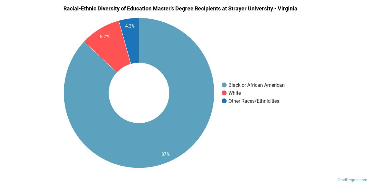 The following table and chart show the race/ethnicity for students who recently graduated from Strayer University - Virginia with a master's in education.