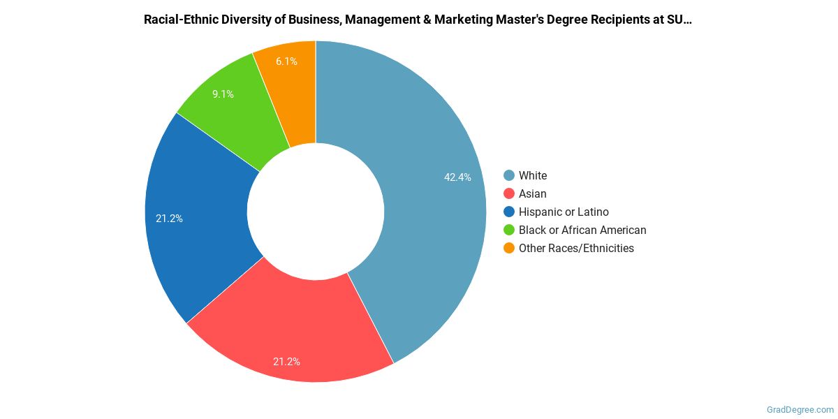 In the business, management and marketing master's program at this school, racial-ethnic minorities make up 52% of degree recipients. That is 20% better than the national average.*