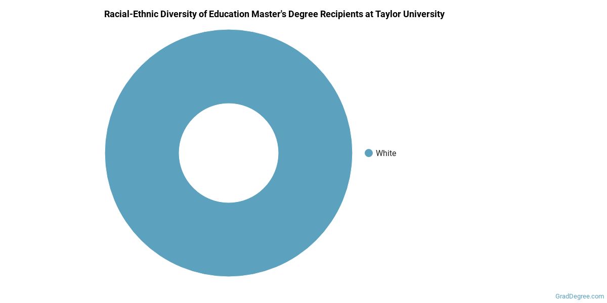 Of the students who received a education master's degree from Taylor U, 100% were white. This is above average for this degree on the natiowide level.