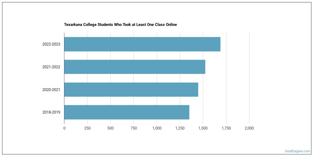 The following chart shows how the online learning population at Texarkana College has changed over the last few years.