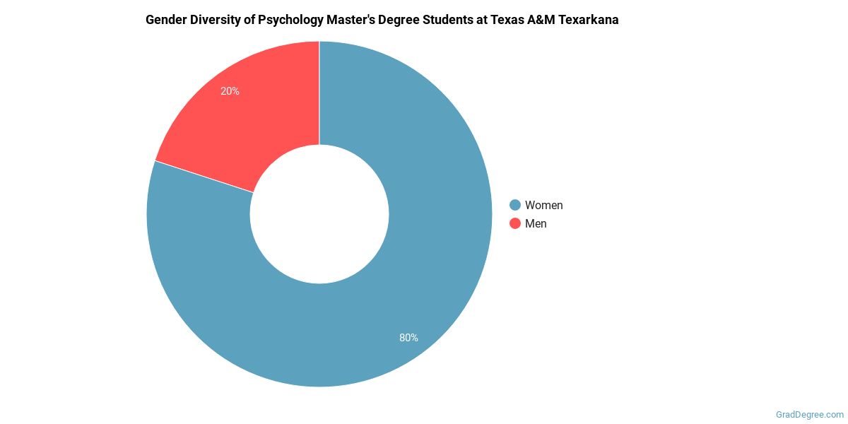 Of the students who received a psychology master's degree from Texas A&M Texarkana, 80% were white. This is above average for this degree on the natiowide level.