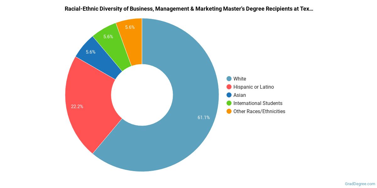 The following table and chart show the race/ethnicity for students who recently graduated from Texas Lutheran University with a master's in business, management and marketing.