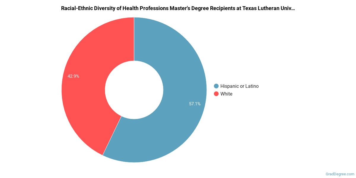The following table and chart show the race/ethnicity for students who recently graduated from Texas Lutheran University with a master's in health professions.